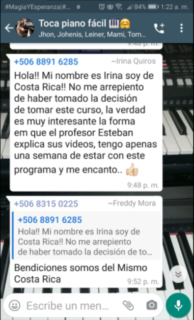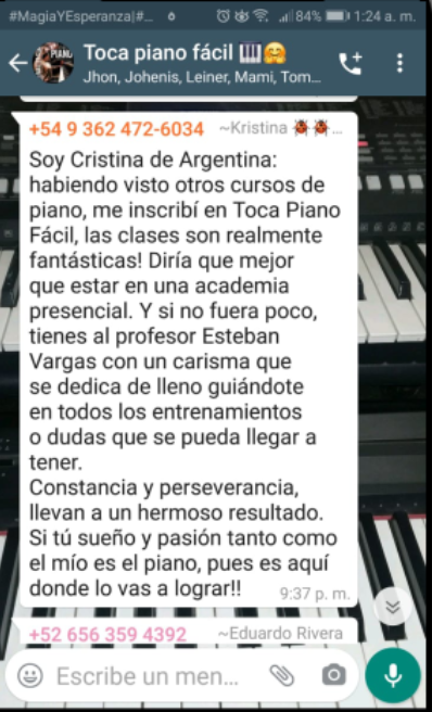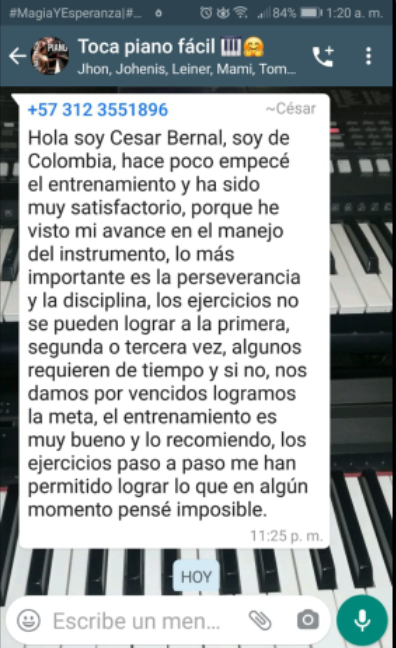 Nada mejor que conocer la experiencia de quienes ya han vivido el curso. Aquí encontrarás algunas opiniones reales de alumnos que empezaron desde cero y hoy disfrutan tocando el piano con confianza y motivación.